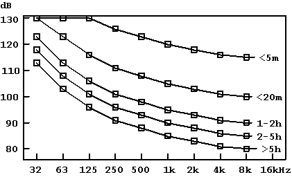 dB per octave. At 500 Hz you allow 88 dB for more than 5 hours