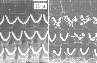 [2] Scanning electron micrographs showing about a dozen outer hair cells in rabbit. The three-row structure looks the same in all mammals. Adapted from: Borg, Conlon, Engström: Noise-induced Hearing Loss. Scandinavian Audiology, Vol. 24, suppl. 4, (1995).