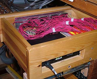 for the same note is received. The 128 decoder outputs are drawn to jacks on a patchboard panel. The note valve control cables from the windchests are plugged into this panel. This is where the correspondence is defined for which particular note will be played by each MIDI note. |