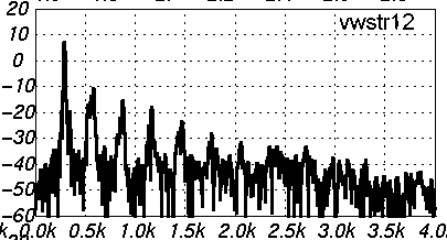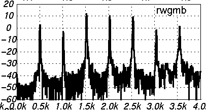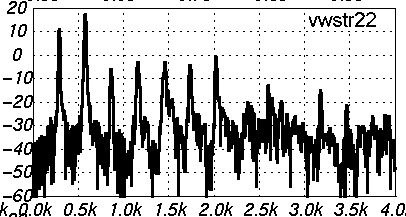 frequencies about 450*(1+2n) Hz, clearly visible in the spectrum