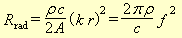 Radiation lossThe open end of the resonator radiates power to be heard as external sound. The energy loss because of this can be characterized by an acoustical radiation resistance. This is often told in terms of the wave numberHere the rightmost rendition is obtained when the elementary relations given above are inserted. That form shows that the radiation resistance is independent of resonator area, but varies strongly with frequency. From this we derive a basic Q value, when set by radiation alone: Considering radiation loss alone it is interesting to note that the factor A f 2 implies that different pipes with the same ratio of length to diameter will have the same Q value for the fundamental. In organ terminology such pipes are characterized by a 'halving number' to be 12. For the following calculus we insert the constants such that we have for the baffled case drad = 5.34*10-5*A f 2 and for an unbaffled pipe half as much drad = 2.67*10-5*A f 2 This 'free space' condition gives the minimum radiation damping attainable. Damping and radiation efficiency gradually increase as the resonator opening is put closer to a wall. The effect increases even more at the angle between two walls or in a corner, and is one of several reasons it may be difficult to measure Q in practice. |