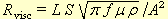 Wall lossIn the boundary layer close to the resonator wall (< 1 mm) the air is sheared as its speed goes down to zero at the wall. The effect of this viscous loss is given by Kinsler et al (1982) as an absorption coefficient, which can be reformed into an equivalent loss resistanceThe viscous loss is non uniform along the pipe since it depends on local flow. Another loss mechanism comes from heat conduction into the wall, some power is lost from the temperature variations following the sound pressure, differently distributed along the pipe. Analysis already by Lord Rayleigh found that thermal damping to obey the same basic formula, only you must then augment it with a complicated multiplier to account for the gas properties. Inserting those we can use the formula for the combined viscous and heat loss once we multiply the viscosity contribution by 1.476. With the constants inserted we then find dwall = 1.476 dvisc = 5.71*10-3*(A f )-1/2. |